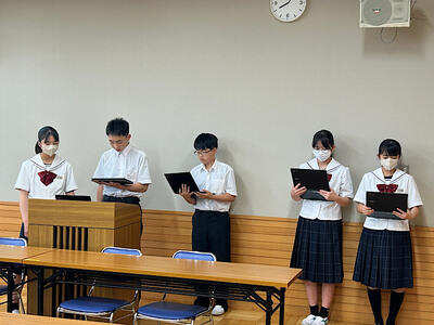 本日(9/10)5校時に後期生徒会役員選挙立会演説会が行われました。
