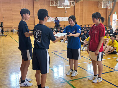本来は前日7月9日の6校時に開催予定でしたが、午後の体育館は非常に蒸し暑く、熱中症の危険度が大きいことから急遽、次の日の1時間目に変更されました。