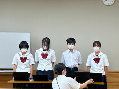 本日(6/24)は図書委員会の発表です。会議室から各クラスへ発信するリモートで行われました。