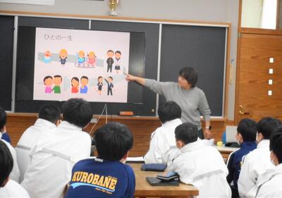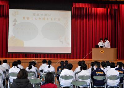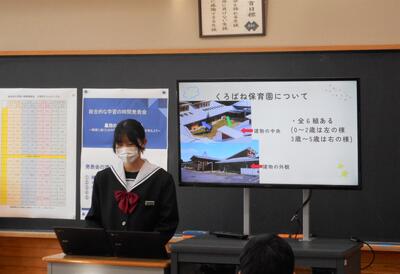 12月20日(土)は、学校公開日でした。たくさんの方々にご来校いただきまして、大変ありがとうございました。普段の授業のほか、1年生と3年生は、総合的な学習の時間のまとめを、2年生は職場体験学習(わくわくチャレンジウィーク)のまとめを発表しました。また、思春期健康教室も行いました。学校運営協議会の委員の皆さまにも授業を参観していただき、感想やご意見をうかがいました。
