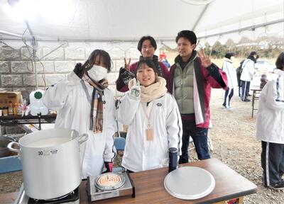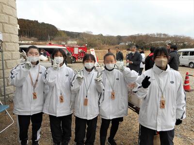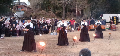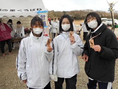 どんと祭 投稿: 校長 (12:37) 1月11日(日)、那珂川の河川敷で「どんと祭」が行われました。黒羽中学校からたくさんの生徒たちがボランティアとして参加し、お炊き上げ品の受取やとんぼ団子などの販売のお手伝いをしました。また、弓道部の2年生が、「弓道ガールズ」としてやぐらへの点火式を行いました。 Tweet -