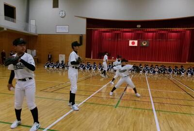 4/13 新入生歓迎会(部活動紹介) 投稿: 校長 (04/13) 本日、放課後、新入生歓迎会(部活動と生徒会執行部の紹介)がありました。1年生に入部してもらえるよう、各部とも工夫を凝らして、紹介やパフォーマンスを行いました。 各部集合です。 1年生が真剣に見ています。 野球部のパフォーマンスです。 男子テニス部です。 女子テニス部です。 男子卓球部です。 女子卓球部です。 柔道部です。 弓道部です。 生徒会執行部のダンスパフォーマンスです。 0 -