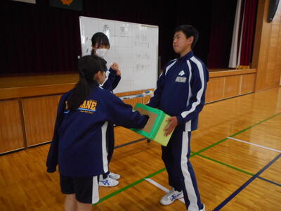 5月27日(水)に実施される体育祭の結団式が行われました。今年度は、全校生徒が朱雀(赤)と黄豹(黄)の2団に分かれ、競技や応援の部で競います。抽選でクラスごとに2団に分かれ、その後、体育館と多目的ホールで団長や団員の紹介があり、早速応援の練習が始まりました。