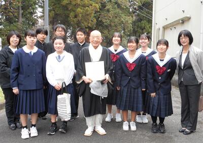 黒羽中を代表して4名の生徒が、金田南中の生徒と一緒に貫主様をお出迎えしました。講話の中でも、黒羽中3年生が、数年前から修学旅行で清水寺を訪問し、交流させていただいていることに触れてくださいました。「努力したことは一つ一つ、心の中にたまっていく」という言葉がとても心に残りました。